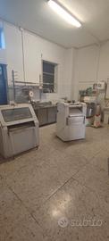 Panificio pronto per lavorare con forno a 9 bocche alimentato a gasolio,3 impastatrici,1 cilindro,1 banco con cella ferma lievitazione, stampatrice michette, una spezzatrice,gruppo per pane all'olio, macchina per formare ciabattine due frigo in laboratorio molto ampio.In negozio c'è un banco frigo per salumi una affettatrice professionale,un frigo per bibite,una bilancia, registratore di cassa collegato all'agenzia delle entrate