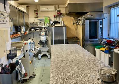 Laboratorio di generose dimensioni completo di tutte le attrezzature necessarie, bar appena ristrutturato e vetrina pasticceria nuova; retrobottega completo di spogliatoi e bagno e magazzino esterno dalle generose dimensioni.