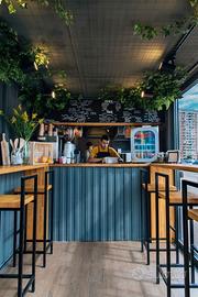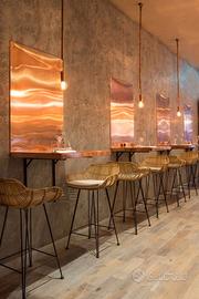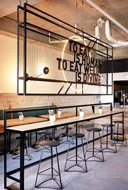 La sala ospita 10 coperti c.a. distribuiti su mensole e sgabelli alti.