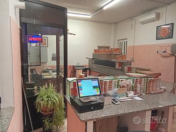Vendesi pizzeria asporto con forno a legna con canna fumaria dedicata e cappa aspirante in laboratorio. Ben avviata composta di 2 locali e bagno, con n. 10 posti a sedere.