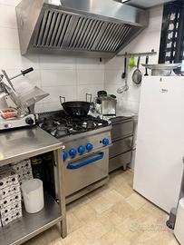 Vendesi pizzeria asporto avviata suddivisa in due locali: Sala interna con 5 tavoli, cucina attrezzata con cucina 4 fuochi con forno a gas, forno per pizza, lavastoviglie frigoriferi a colonna, congelatore e tutte le attrezzature necessarie. Impianti e attrezzature nuove con certificazioni, perfettamente funzionanti. Locale attualmente in piena attività. Bagno per il personale e bagno per i clienti a norma Locale al vomero, fronte strada, in posizione strategica, vicino a numerosi parchi e zona di passaggio Affitto 1100 ? mese Ottima occasione per chi cerca un'attività già pronta in una zona con buon potenziale