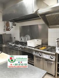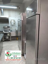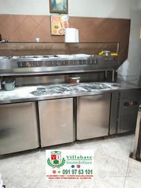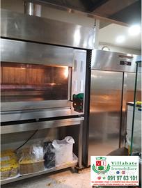 Attrezzature professionali: Il locale è già arredato e attrezzato: forno elettrico con 2 buchi, forno a legna per pizzeria, friggitrice elettrica professionale con 2 vasche da 25 litri, friggitrice con una vasca da 25 litri, cucina professionale con 8 fuochi , girarrosto per 48 polli allo spiedo, 2 frigoriferi ad un anta, frigorifero a 2 anta, frigorifero per condimenti, banco frigo per alimenti pizzeria, vetrina refrigerata, 2 vetrine per rosticceria, 3 banchi da lavoro in acciaio, 2 banchetti congelatore
