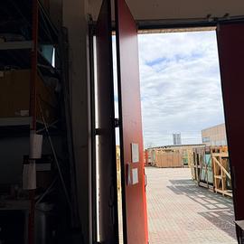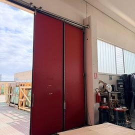 Vendo 2 portoni da capannone usati ma in buone condizioni. Misure vano Larghezza 5000 mm Altezza 4220 mm Colore rosso sia all'interno che esterno Apertura manuale a libro con maniglie "cariglione"