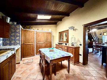 All'ingresso, un comodo portico ci accoglie e ci conduce a un ampio salone dal fascino antico. Questo spazio è impreziosito da mobili d'epoca, pavimenti con maioliche e da un suggestivo camino in pietra, che funge da elemento centrale, donando calore e un'atmosfera senza tempo.