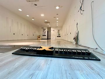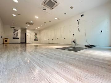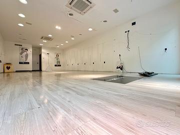 Il negozio è composto da un unico locale, con due ampie vetrate che garantiscono luminosità e visibilità.