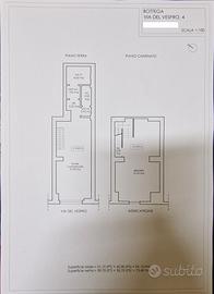 Il locale è composto da una luce su strada. un vano al piano terra di circa 51 mq., con due bagni ed antibagno, ed un locale al piano seminterrato di circa 45 mq..