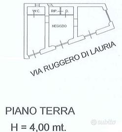 Il locale si estende su una superficie di circa 65 mq ed è suddiviso in 3 vani + w.c. e ripostiglio.