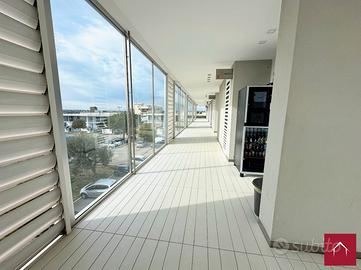 L'immobile è composto da ingresso, due stanze operative, bagno e ripostiglio, ed è provvisto di parquet, citofono, porta blindata, infissi a taglio termico e aria condizionata in tutti gli ambienti.