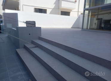 Su strada principale via V. Veneto un'ampia vetrina e 100mq di spazio antistante, da via XX Settembre SI PUO' ACCEDERE CON QUALSIASI AUTOMEZZO in quanto è a piano di strada(basta solo eliminare un muretto) con altezza del locale di m.4,00, con 50 mq di spazio fuori, due bagni e due stanze grandi adibite a studi e un ripostiglio.