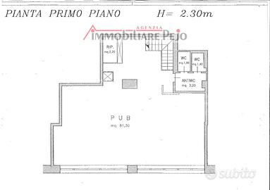 Ampia sala interna al primo piano, bancone attrezzato, nuovi servizi igienici.