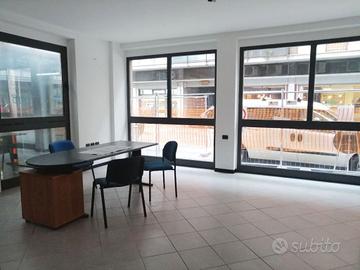 P.TERRA - Ingresso su ampia zona open (facilmente divisibile grazie alle ampie vetrate fronte strada), altro vano sempre ad ufficio ed un comodo e rifinito bagno....(mq 40).