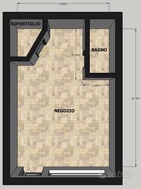 Il negozio è di circa 25 mq con un piccolo bagno di recente costruzione. L'immobile è in buono stato conservativo, con pavimento di pregio, soffitti alti.