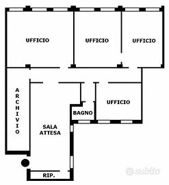 ingresso su ampia sala d'attesa, quattro uffici luminosi e ben distribuiti, ripostiglio, archivio e bagno.