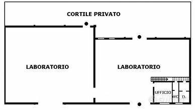 Affittasi capannone ad uso laboratorio/magazzino con ufficio, bagno, due accessi carrai, cortile privato con tettoia.