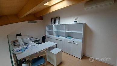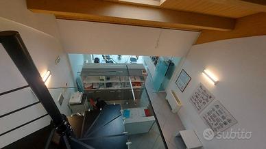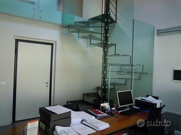 PIACENZA CORSO EUROPA - UFFICIO DI 80 MQ. SU DUE LIVELLI composto da reception e sala riunioni al primo piano, soppalco con ufficio, archivio e bagno. FINITURE EXTRA LUSSO: soffitto con travi in legno a vista, videocitofono, scala in cristallo, climatizzatore.