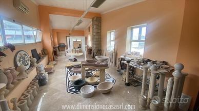 VENDITA Rif.CP20 - Capannone Industriale/Artigianale mq 592, C/3 in C/da Raffondo Serra - Zona Centro commerciale il Casale a San Cataldo. Composto da: area produzione mq 431, con spogliatoi e bagni e ufficio progettazione, al piano primo uffici, showroom, bagni e archivio, area esterna tutta recintata con piazzale in cemento armato mq 1420, area parcheggi esterna recintata mq 750. Lo stabile é realizzato tutto in cemento armato modulare, con diverse aperture laterali. Vista l'attività esercitata sono presenti diverse vasche interrate e pozzi di acqua per la lavorazione dei marmi. Cancello automatico con video citofono. VERO AFFARE - PREZZO TRATTABILE.