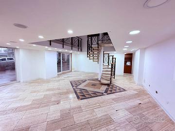 La proprietà, particolarmente visibile grazie a due ampie vetrine su strada, dispone di due ingressi indipendenti con vetrine, ideali per attività che necessitano di un doppio accesso e di aria condizionata centralizzata.