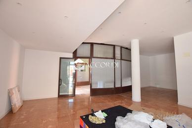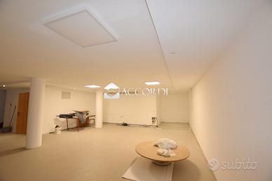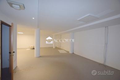 Praticamente adiacente alle mura storiche, possibilità di un negozio o ufficio posto al piano terra, con accesso diretto e una superficie calpestabile di 95 mq. Mediante scala interna si accede direttamente al piano interrato dove è presente un magazzino di oltre 100 mq che può essere utilizzato per una sala riunioni o come deposito, in quanto vi è un accesso diretto dal tunnel dell'interrato. Entrambi i piani sono dotati di bagno con relativo antibagno. L'immobile sarà consegnato libero completamente e ripitturato.