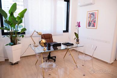 Ufficio ristrutturato recentemente, climatizzato con WI-Fi super veloce (fibra), composto da due locali, sala di attesa ed ingresso corridoio, bagno ed antibagno, lampade di emergenza, impianto elettrico recente ed a norma, terrazzino. Posto auto in garage. Nelle vicinanze tutti i servizi necessari: tabacchi, ristoranti, farmacie bar etc. etc., da sottolineare un grande parcheggio in prossimità ed un grande parco verde attrezzato. L'ufficio si trova al primo piano ed è servito da due ascensori in uno stabile che si presenta in ottime condizioni.