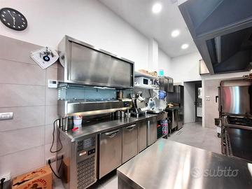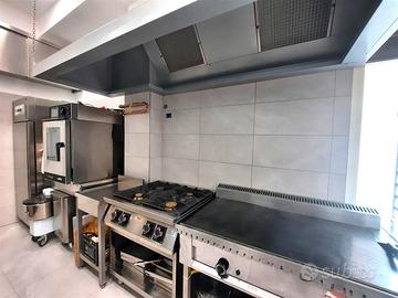 - Attrezzature professionali di marca complete (piastre cottura, forno ventilazione, frigoriferi, freezer)