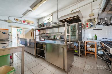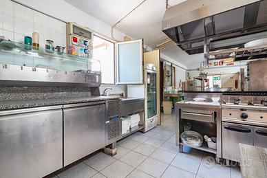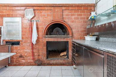 Gli arredi e le attrezzature, complete ed efficienti, comprendono anche un forno a legna da 10 pizze oltre a cella frigorifera.