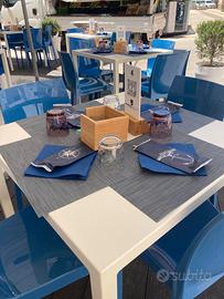 Pedana con dehor ed ombrelloni in pvc con relativi teli cristall antipioggia e due separatori anti vento per esterni