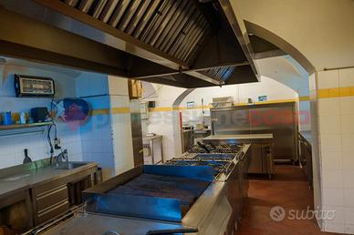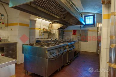 Accedendo dall'ingresso principale troviamo i servizi ; la sala principale è molto ampia e luminosa, tanto che può ospitare circa 100 persone; infine la cucina, completa di cella frigorifera e completa di tutte le stigliature necessarie per accogliere numerosi ospiti.