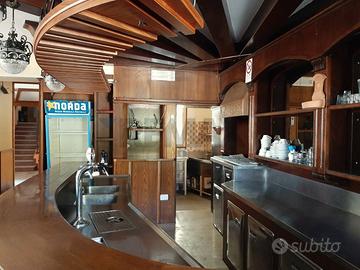 All'interno, l'atmosfera accogliente e rustica è arricchita da un arredamento ligneo e dettagli in ferro battuto. Il bar dispone di due spaziose aree principali e una saletta secondaria, oltre a un disimpegno.