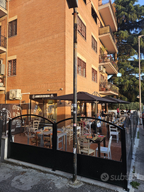 situato in posizione strategica a soli 50 metri da Largo La Loggia, nel cuore del quartiere Portuense (Roma). Caratteristiche del locale: 60 coperti interni in ambiente climatizzato 90 coperti esterni su area di proprietà o Esterno attrezzato con tende da sole nuove che si chiudono anche per l'inverno, tettoia in policarbonato, riscaldamento esterno.