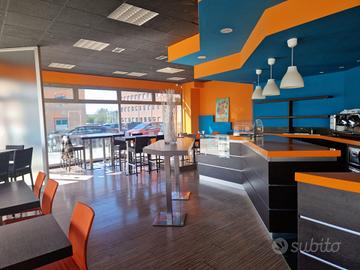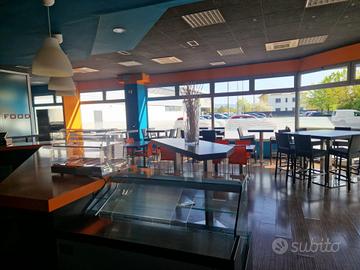 Il ristorante si compone di un'ampia zona adibita a tavoli e sedie per circa 70/80 coperti, con il bancone di somministrazione delle bevande a vista e zona cucina adibita a self-service: completano la proprietà una sala privè con la possibilità di ricavare altri 20 coperti e una seconda cucina attrezzata per la preparazione degli alimenti, doppio bagno e doppio ripostiglio.