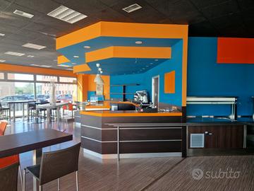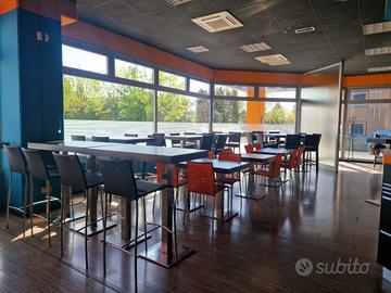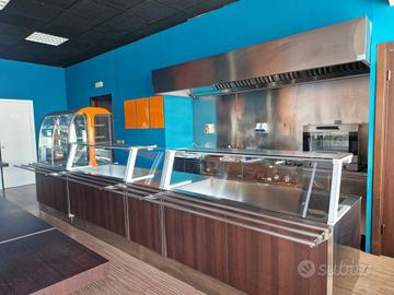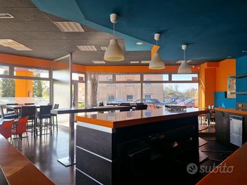 Il ristorante si compone di un'ampia zona adibita a tavoli e sedie per circa 70/80 coperti, con il bancone di somministrazione delle bevande a vista e zona cucina adibita a self-service: completano la proprietà una sala privè con la possibilità di ricavare altri 20 coperti e una seconda cucina attrezzata per la preparazione degli alimenti, doppio bagno e doppio ripostiglio.