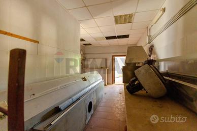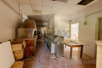 Gli interni comprendono due ampie sale luminose con camino, angolo pizzeria, cucina professionale con laboratorio e servizi, tutti in buone condizioni. Gli infissi in PVC con doppio vetro, recentemente sostituiti, garantiscono efficienza e comfort.