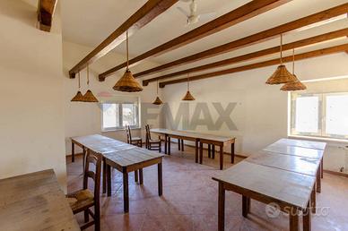 Allesterno, una zona attrezzata con forno, fornello e servizi amplia ulteriormente le possibilità di utilizzo, risultando ideale per eventi estivi, ricevimenti o attività stagionali. Completano la proprietà locali deposito, funzionali alla gestione operativa.