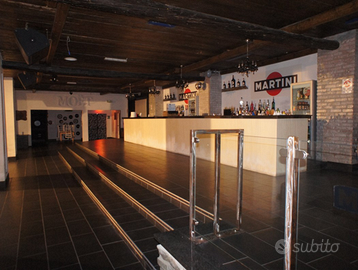 L' immobile è costituito da una zona interna di 550 mq con sala (parzialmente arredata), pista da ballo con consolle e impianto audio luci, bancone, servizi anche disabili e spogliatoio personale e cucina (completamente attrezzata come da foto), da un esterno allestito per uso estivo di 1000 mq attrezzati con gazebo, pista da ballo con consolle e impianto audio luci, secondo bancone e alcuni arredi esterni. Vi sono inoltre un utile magazzino al piano superiore di 135 mq e un ampio terreno di 3000 mq diviso tra prato erboso per strutture estive (piscine, gonfiabili...) e un piazzale con circa 200 posti auto. Gli impianti di sicurezza sono a norma, le dotazioni perfettamente funzionanti ed è predisposto per impianto di sicurezza e videosorveglianza. La posizione oltre che molto gradevole negli esterni è strategica trovandosi su una strada principale che garantisce una buona visibilità e passaggio in una zona densamente abitata in cui non sono ad ora presenti attività di tale tipologia e dimensioni.