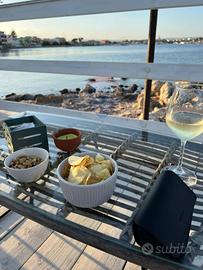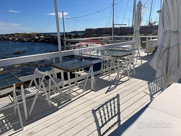 La struttura si sviluppa completamente sul mare e si estende su una superficie totale di 300 metri quadrati sulla quale si trovano due diverse strutture esagonali ai lati, una dedicata al cocktail bar ed una struttura esclusivamente dedicata alla cucina ,la metratura ampia e ben distribuita, con una vista mare mozzafiato .