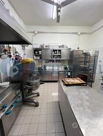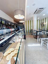 P. Terra: c.a 55 mq di area commerciale con banco bar e zona ristoro; c.a 20 mq laboratorio - cucina con canna fumaria completamente attrezzata ; due servizi igienici con antibagno.