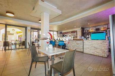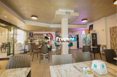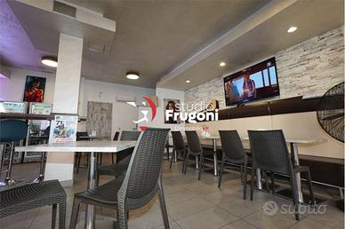 I locali sono composti da un ampio salone climatizzato con posti a sedere interni, zona bar, locale separato con cucina professionale completa di cappa di aspirazione, accesso a doppi servizi con accesso disabili, zona sala slot e un ampio plateatico esterno sotto porticato.