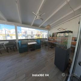 Al piano terra troviamo triplo ripiano liquori e vini con portabicchieri integrato che espone elegantemente i bicchieri da vino, mentre il ripiano superiore è il luogo perfetto per oggetti decorativi o per riporre oggetti extra. Bancone bar, cocktail station, cassa con sistema RISTOQUICK, sul retro bottega comoda cucina attrezzata di tutto il necessario per l'attività ristorativa. Al piano superiore e sullo spazio esterno i posti a sedere con vista mare completano lo spazio fruibile del locale. All' interno tutto è norma, dando la possibilità al locatoratario di poter iniziare da subito una nuova attività.