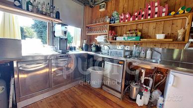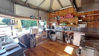 Allesterno, il bar dispone di un ampio portico e un gazebo arredato ed equipaggiato, con una cucina ben organizzata e 22 tavoli in legno con panche e ombrelloni, tende da sole elettriche e separé laterali.