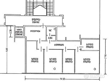 La proprietà, situata al primo e ultimo piano, è composta da un locale reception, cinque uffici, antibagno e bagno.
