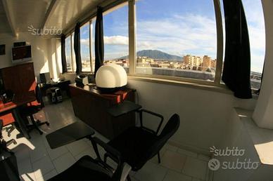 Affitto sala riunioni panoramica 12/18 posti €69 a giornata ALL INCLUSIVE, con accesso alla terrazza con vista Vesuvio, Wi-Fi gratuita, connessione Internet fibra gratuita, climatizzazione, zona reception, attesa, servizio. Ambiente operativo, struttura professionale e dinamica dove accogliere i tuoi clienti e visitatori, avendo a disposizione: