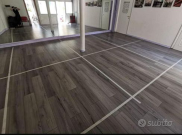Una sala 100 mq tappeto danza stereo spogliatoio specchi bagno reception