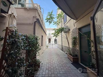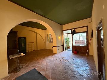 In posizione centrale, con accesso diretto dalla zona pedonale, fondo composto da ampio vano con arco interno oltre doppi servizi e disimpegno. Doppio accesso. Piccolo spazio esterno.