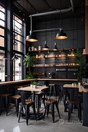Completano il locale i doppi servizi per il pubblico, di cui uno utile anche per i diversamente abili, deposito, magazzino ed il servizio e lo spogliatoio per il personale.