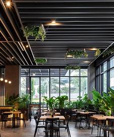 Entrando veniamo accolti da una doppia sala volta ad ospitare 95 coperti interni c. a. , con la zona cassa e bancone beverage attrezzato.