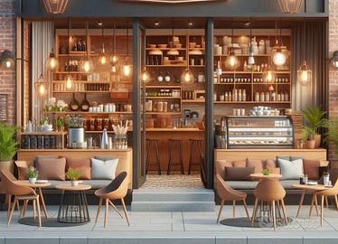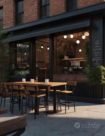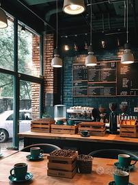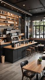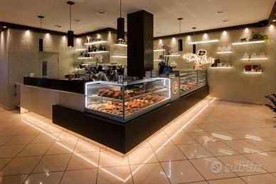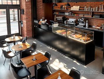 c. a. disposti su un unico livello, dove troviamo un ampio bancone caffetteria/gastronomia con tre vetrine caldo/freddo,macchina del caffè ed una moderna