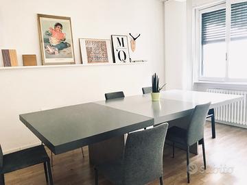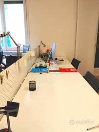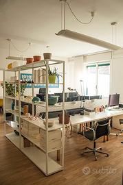 Offriamo un'ampia stanza ad uso esclusivo posta all'interno di uno studio condiviso. Lo spazio è già arredato e completamente personalizzabile, ideale per ospitare fino a 5 postazioni di lavoro. L'ufficio è composto da: oun ampio open space molto luminoso e silenzioso, grazie all'esposizione interna; ouna sala riunioni indipendente; A disposizione anche una piccola area ristoro con frigorifero, macchina del caffè, bollitore e microonde. È possibile parcheggiare la bicicletta in cortile e disponiamo di un posto auto condiviso, gestito in base alle esigenze del gruppo. Canone mensile: ? 900, comprensivi di: opulizie settimanali outenze oWi-Fi outilizzo sala riunioni oparcheggio biciclette Lo spazio è pensato per professionisti creativi (architetti, designer, grafici, illustratori), ma aperto anche a chi svolge attività diverse e apprezza il mondo dell'architettura e del design.