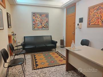 In pieno centro, a pochi passi dal tribunale, e precisamente, in Via Ferdinando Li Donni, stradina pedonale adiacente a Via Mariano Stabile alta, proponiamo, in studio associato, a professionisti, stanza NON ARREDATA di circa 15 mq. L'ufficio è posto al piano 1° all'interno di un signorile palazzo servito da ascensore. E' composto da ingresso/sala di attesa, tre ampi uffici con grandi vetrate su Via Mariano Stabile che rendono gli ambienti luminosi e confortevoli a seguire doppi servizi. La locazione e di € 250,00 oltre 1/3 di spese condivise (acqua, luce, telefono/internet e condominio). Disponibilità immediata.
