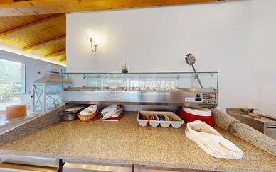 Passando al RISTORANTE troviamo un'ampia sala con forno a legna per la preparazione della pizza, completo di tutte le attrezzature necessarie.
