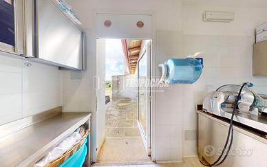 Cucina attrezzata con dispensa e ripostiglio, servita da un orto retrostante alla cucina per un'ulteriore comodità.